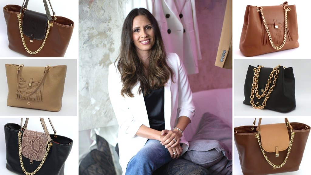 Una mujer multi-talento, creativa y emprendedora, que no duda en poner en marcha las ideas que le surgen, a menudo porque ella misma las necesita. Este es el caso de sus preciosos bolsos de su mismo nombre. La falta de opciones prácticas y estéticas incluso en las grandes marcas, la llevó a crear estas joyas, hechas de piel y con estilo, que sirven a una mujer moderna, ocupada y estilosa, que no tiene tiempo (ni ganas) de cambiar de bolso cada día.