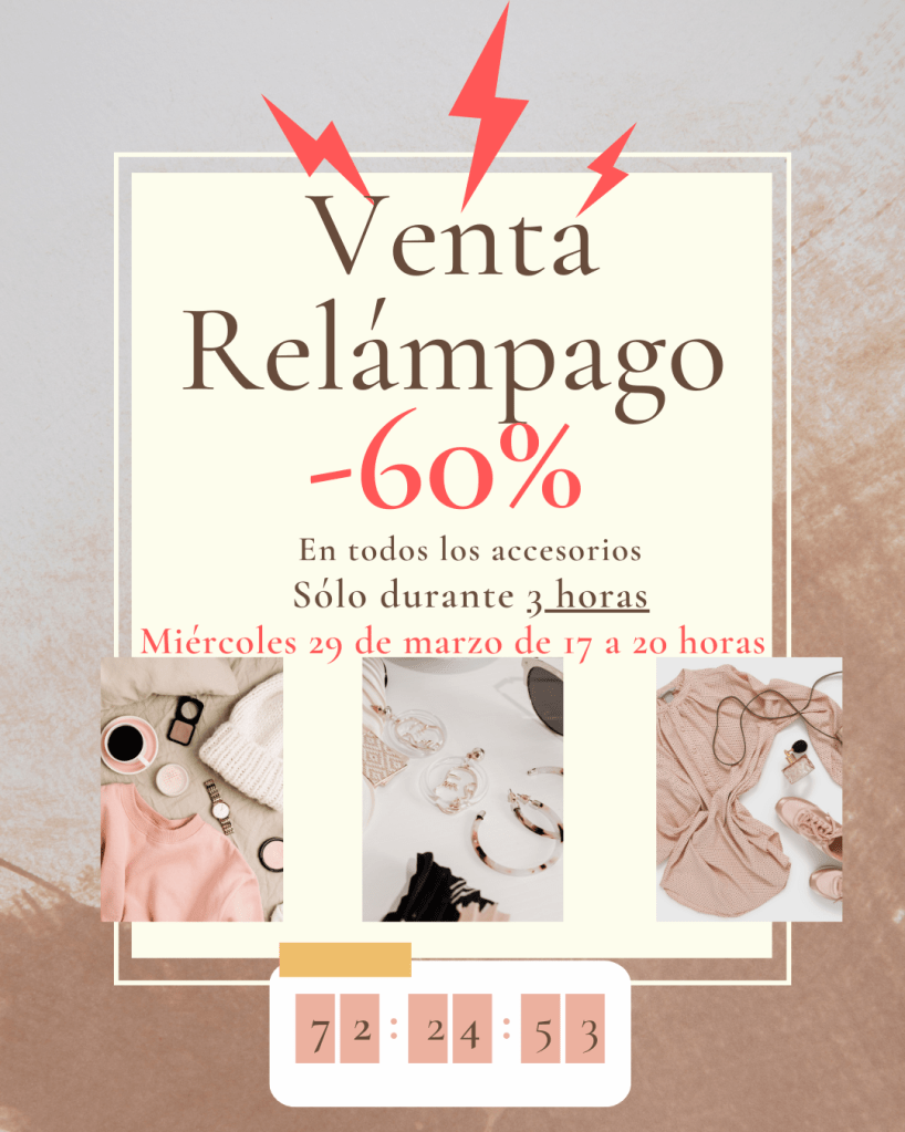 Duración de la venta relámpago – Un error que cometen el 99% de las plantillas en Canva es no incluir la duración de la promoción relámpago (por suerte, las plantillas las puedes customizar, así que lo puedes añadir).